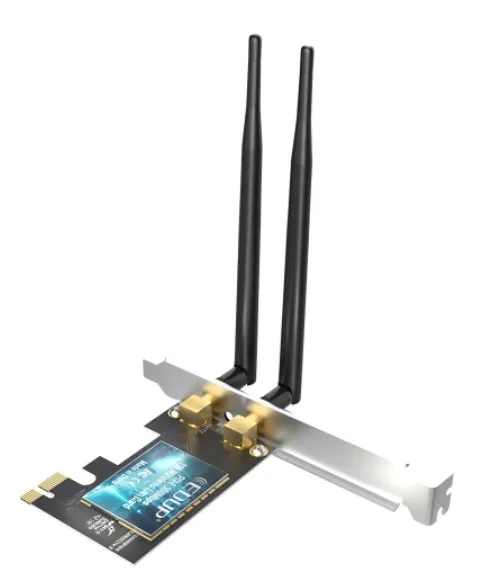 Внутренний Wi-Fi адаптер EDUP EP-9626 предназначен для подключения в системные блоки и обеспечивает беспроводной доступ к сети Интернет со скоростью до 300 Мбит/сек. Адаптер предполагает внутреннюю установку основной части устройства. Корпус включает две внешние антенны, которые будут принимать сигнал. Подключение адаптера производится с помощью интерфейса PCI Express 2.1 x8. Высокая скорость соединения обеспечит вашу комфортную работу в сети: вы сможете искать данные в Интернете, загружать файлы, смотреть онлайн-видео и играть в онлайн-игры, а также выполнять телефонные звонки VoIP. Эта модель представляет собой отличное решение для оснащения универсального домашнего компьютера или мощной рабочей станции.
