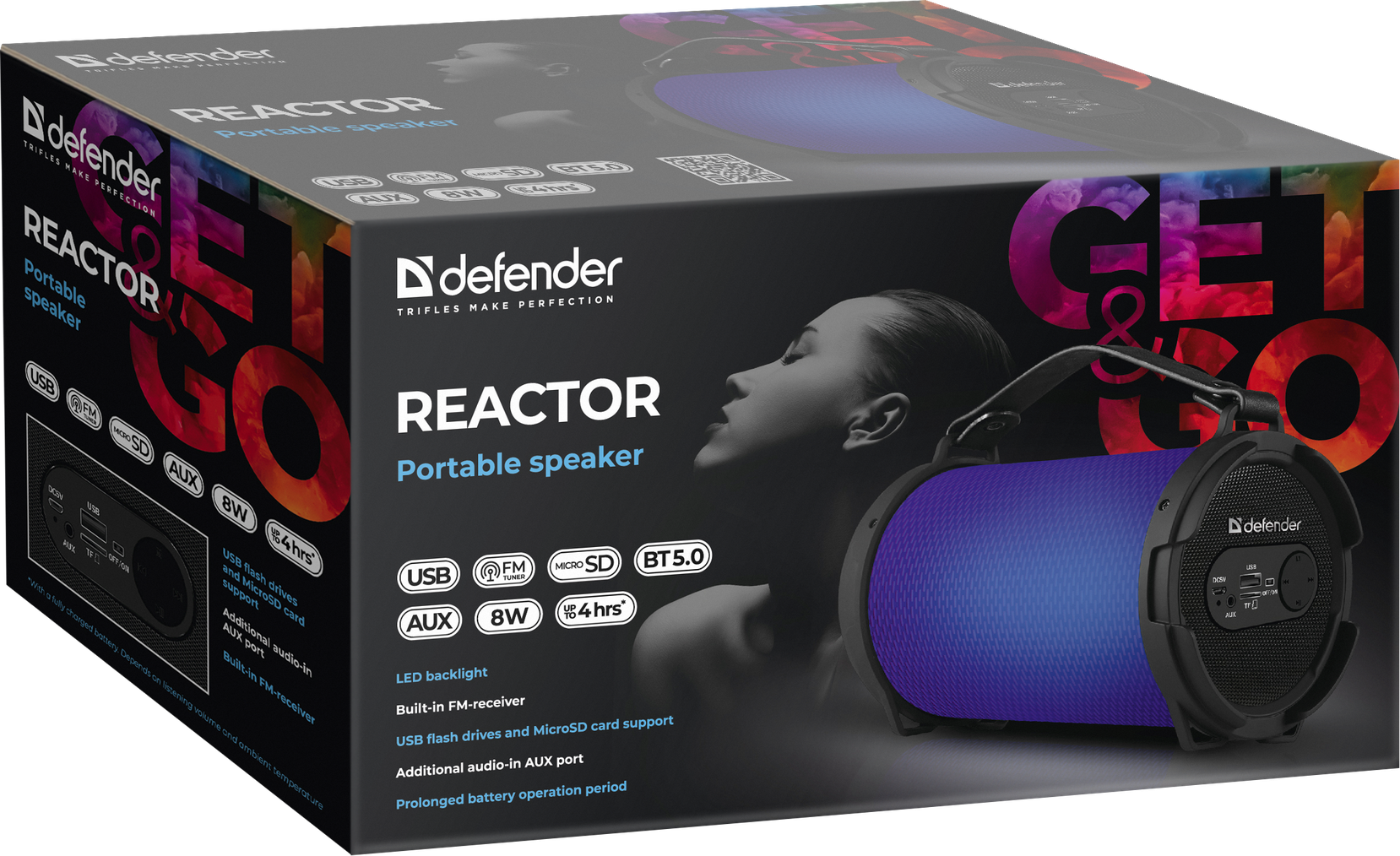 Портативная акустика Defender Reactor - это портативное устройство, которое обеспечивает передачу качественного звука. Подключение производится либо через технологию Bluetooth, либо через 3.5 мм разъём Mini-Jack. Функция Hands Free позволяет отвечать на звонки не поднимая телефона, а встроенный микрофон - общаться. Наличие пассивного излучателя значительно усиливает глубину звука и улучшает качество воспроизведения.