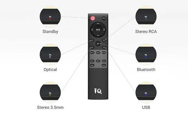 Акустическая система IQBoard IQSound SA200 изготовлен в компактном корпусе из прочного пластика. Для подключения к источнику звука имеются проводные интерфейсы USB и 3.5 мм джек. Поддерживается работа по беспроводному протоколу Bluetooth с дистанцией до 10 метров. В комплекте имеется беспроводной пульт для настройки уровня громкости и переключения источников звука. Общая мощность саундбара составляет 80 Вт, чего достаточно для покрытия помещений среднего размера.