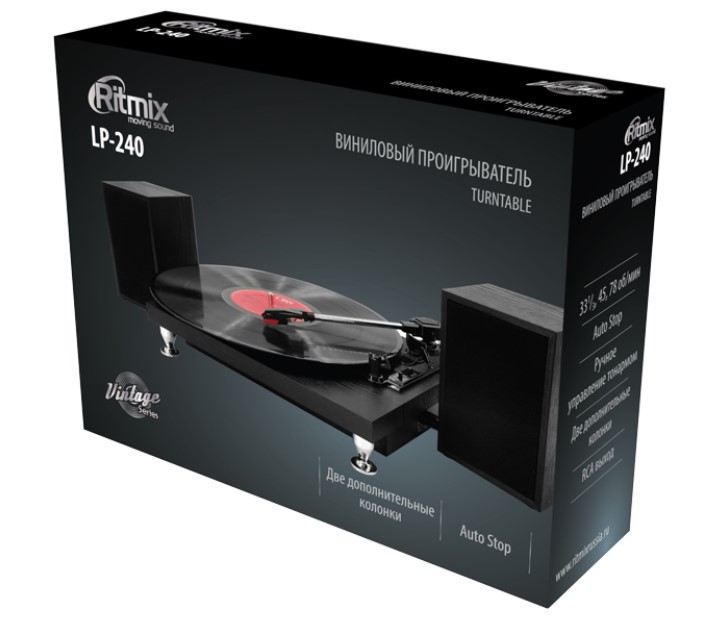 | Комплектация | Проигрыватель виниловый Ritmix LP-240 темное дерево / Стационарная колонка для Ritmix LP-240 - 2 шт. / Адаптер для пластинок на 45 оборотов в минуту - 1 шт. / Документация |