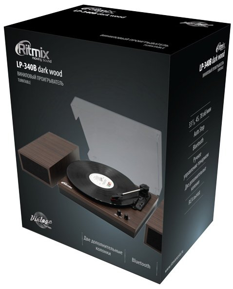 | Комплектация | Проигрыватель виниловый Ritmix LP-340B темное дерево / Стационарная колонка для Ritmix LP340B - 2 шт. / Адаптер для пластинок на 45 оборотов в минуту - 1 шт. / Документация |
