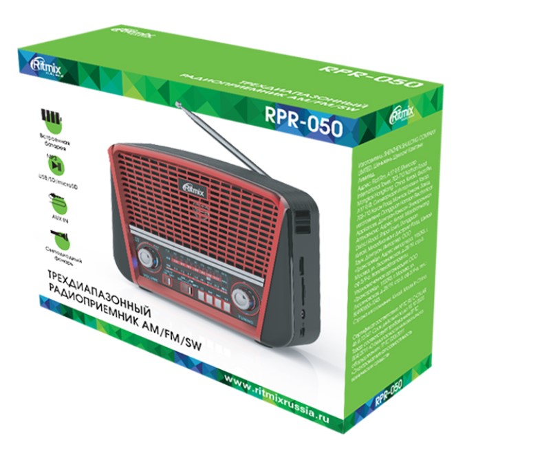 | Комплектация | Радиоприемник портативный Ritmix RPR-050 красный / Кабель питания - 1 шт. / Ремень для переноски - 1 шт. / Документация |