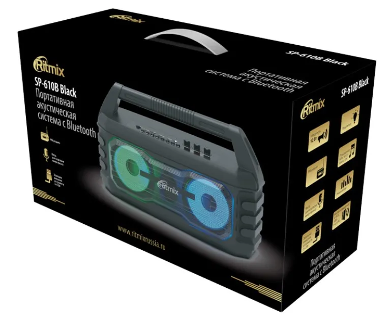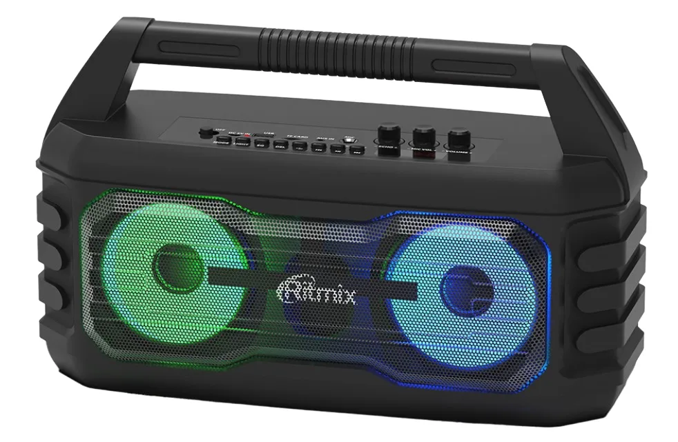 Акустическая система Ritmix SP-610B представляет собой компактную портативную колонку, через которую можно слушать музыку. Беспроводная акустическая система может быть подключена к ПК или смартфону через соединение Bluetooth. Также устройство поддерживает запуск музыки с накопителя- USB и карты памяти. Также на корпусе устройства есть интерфейс AUX для проводного подключения.