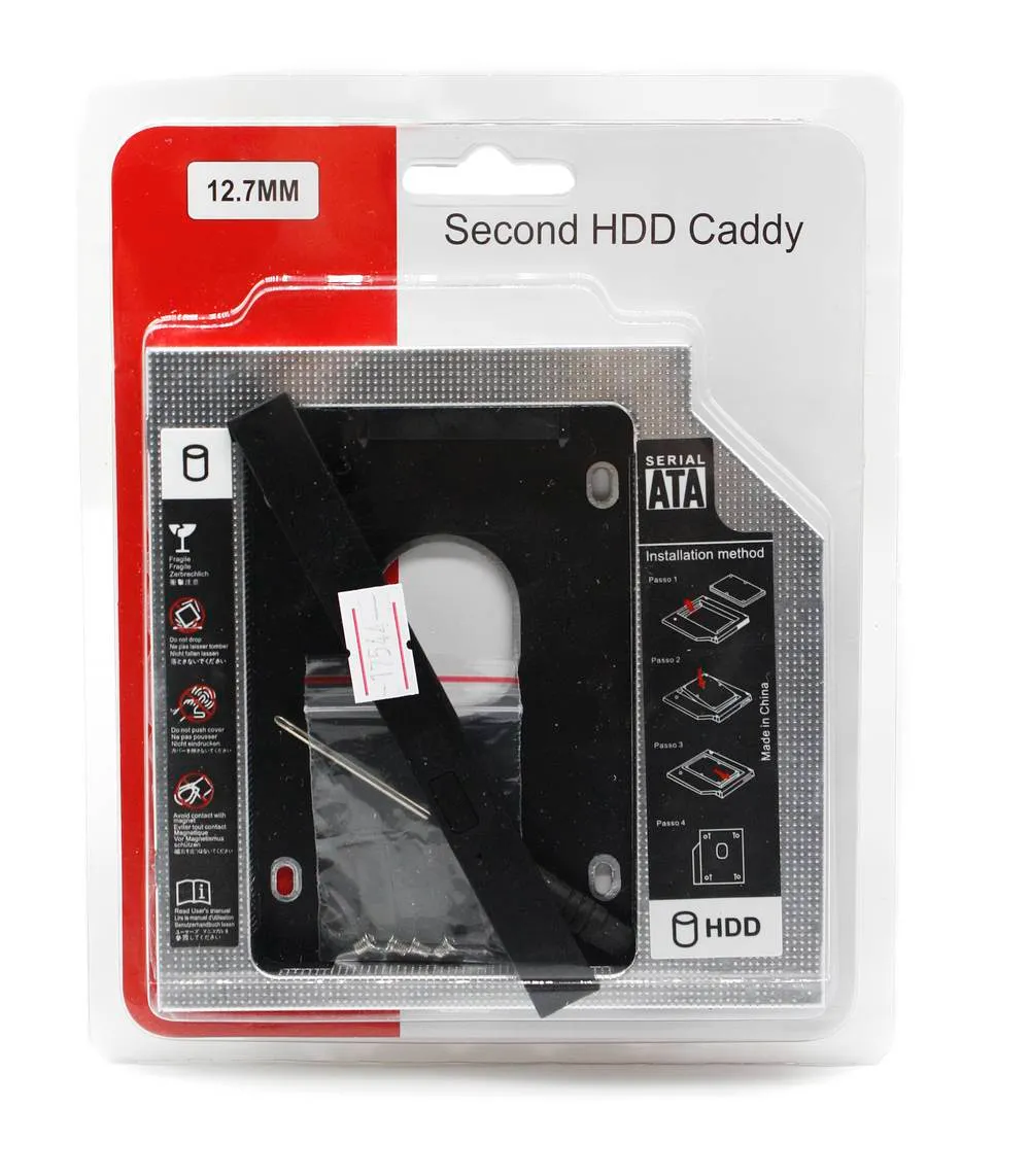 | Дополнительные возможности | Интерфейс подключения: SATA to SATA / Толщина адаптера: 12.7 мм / Возможно потребуется перестановка креплений с DVD-привода / Расширение дискового пространства — установка второго накопителя / Повышение производительности — часто используется для переноса системы на SSD, оставив HDD для хранения данных / Не требует переустановки Windows и драйверов / Совместимые накопители: 2.5" HDD или SSD |