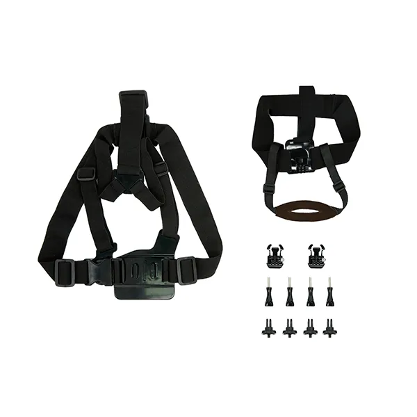 Головной ремень с регулируемыми элементами оснащен ремешком для подбородка, который обеспечивает надежную фиксацию устройства на голове. Камера устанавливается на крепление с помощью винтовых соединений. Второй элемент комплекта – нагрудный ремень. Его плотную и комфортную посадку на вашем теле можно легко обеспечить с помощью регулируемых ремней. Используя это крепление, вы будете снимать также от первого лица, но с другого ракурса. Используйте элементы набора по очереди, создавая эффектные и динамичные видео.
