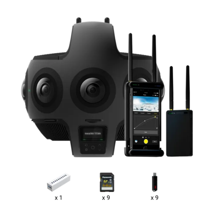 Панорамная камера Insta360 Titan – высокопроизводительное устройство профессионального класса, с помощью которого вы сможете создавать панорамные видео и фото материалы в разрешении 11 К. Модель поставляется с пультом управления и комплексом карт памяти, по одной на каждый из восьми объективов и одной общей картой памяти. Высокое качество съемки обеспечивают матрицы формата 4/3 , а также 9-осевая стабилизация. В результате получается изображение в качестве VR с невероятной детализацией, реалистичной цветопередачей, не уступающей по качеству высоким стандартам кинематографа.