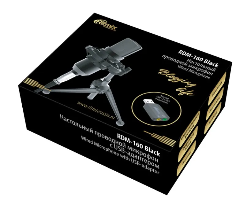 Микрофон Ritmix RDM-160 представляет собой современное стильное и надежное решение бюджетного класса. Предназначается для проведения прямых трансляций, записи звука для видеороликов, общения в конференциях и мессенджерах. Оснащается капсюлем конденсаторного типа с кардиоидной диаграммой направленности. Работает с частотами диапазона от 20 Гц до 20000 Гц. Для подключения предусмотрен кабель с длиной 2.5 метра и интерфейсом XLR, а также дополнительной звуковой картой с портом USB.