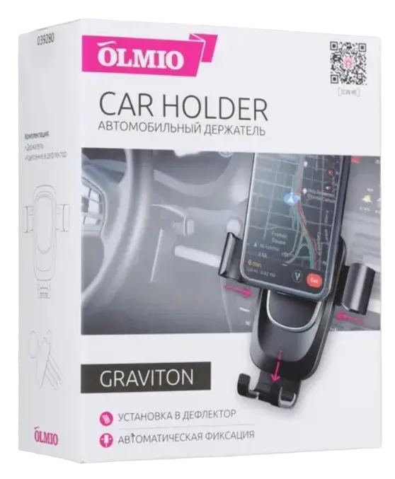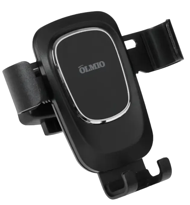 Подставка для телефона Olmio Graviton черного цвета устанавливается в салоне автомобиля на вентиляционную решетку и помогает надежно и удобно разместить смартфон таким образом, чтобы его экран был рядом с водителем и не мешал управлению автомобилем. Модель подходит для смартфонов шириной от 64 до 87 мм. Конструкция держателявключает в себя зажим, который автоматически защелкивается и крепко фиксирует смартфон даже во время резких маневров автомобиля или тряски. Подставка легко устанавливается и при необходимости также просто снимается с решетки вентиляции.