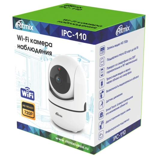 IP-камера Ritmix IPC-110 представляет собой устройство для обеспечения безопасности частного дома, офиса, склада, дачи или квартиры. Камера имеет встроенный модуль Wi-Fi 802.11b/g/n, позволяющий передавать видеоизображение с разрешением до 1280x720 пикселей и частотой 25 кадров/с. Имеется поддержка трансляции изображения в облачное файловое хранилище для обеспечения удаленного доступа со смартфона, планшета или компьютера.