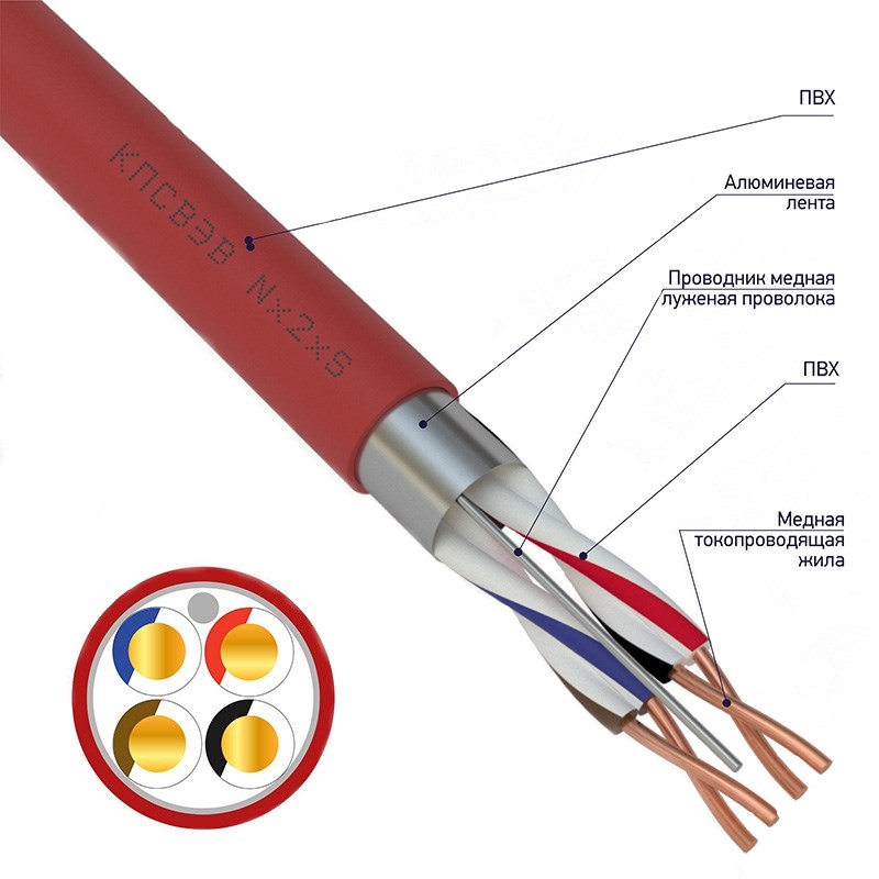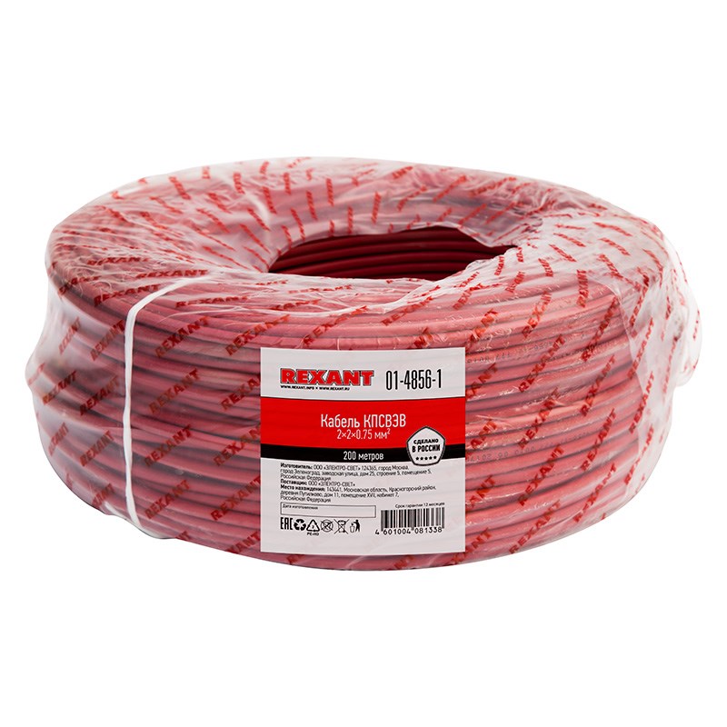 | Комплектация | Кабель для пожарной сигнализации Rexant КПСВЭВ 2x2x0,75 мм² |