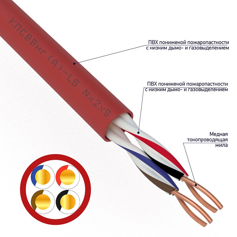| Комплектация | Кабель для пожарной сигнализации Rexant КПСВВнг(А)-LS 2x2x0,50 мм² |