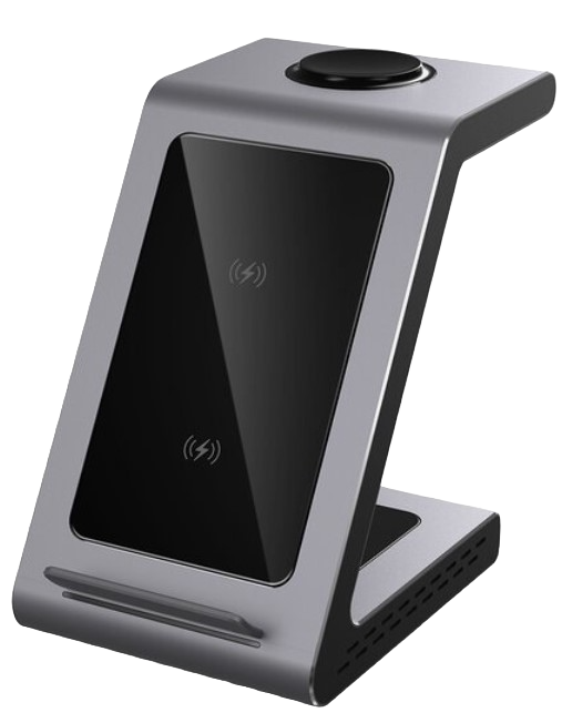 Зарядное устройство ReVolt A9 от компании Prestigio представляет собой высокотехнологичное и удобное устройство для зарядки электронных девайсов. Модель разработана для смартфонов, смарт часов и наушников, оснащенных технологией беспроводной зарядки Qi. Эта станция подходит для устройств Samsung и гаджетов других брендов. Для каждого из устройств в конструкции предусмотрено отдельное место. В результате все гаджеты будут компактно и аккуратно размещены и быстро зарядятся без подключения проводов.