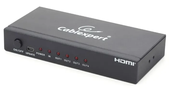 Конвертер Cablexpert HDMI splitter DSP-4PH4-02 поможет подключить к компьютеру сразу 4 устройства для вывода графики. Это может быть несколько мониторов, телевизоров или плазменных панелей. Адаптер разветвляет один интерфейс HDMI на четыре порта. В конструкции устройства есть широкополосной усилитель на 225 МГц, который выполняет функцию восстановления качества входного сигнала и передает его по кабелю длиной до 10 метров. Корпус конвертера отличается небольшими размерами и прочной конструкцией. В комплектацию к нему идет сетевой адаптер.