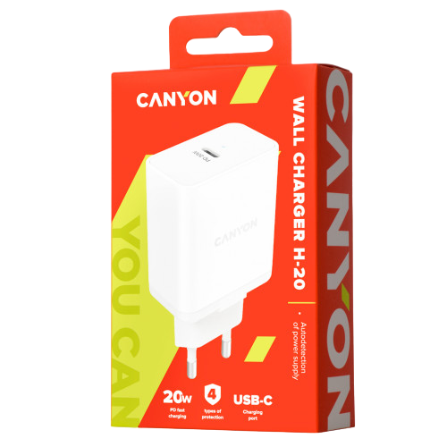 | Комплектация | Адаптер питания Canyon H-20 белый / Документация |