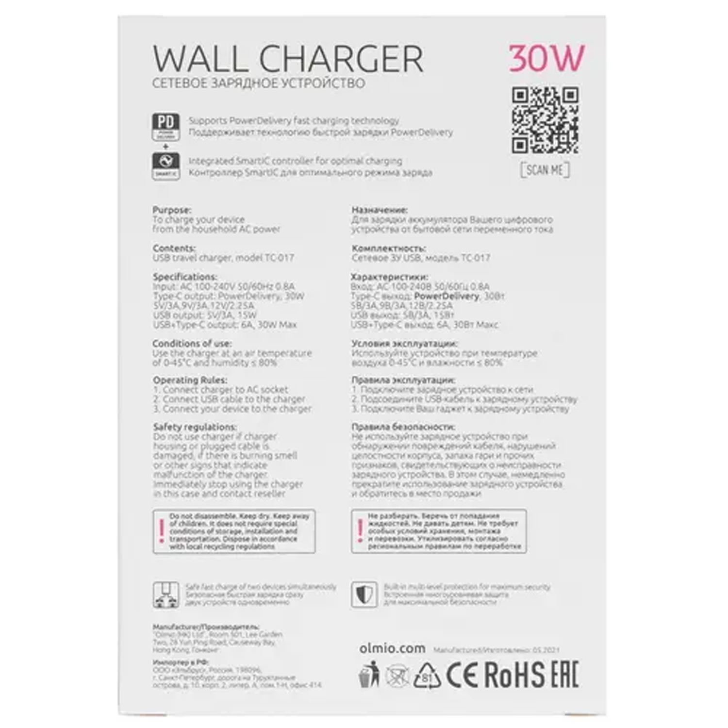 используется для подзарядки мобильных устройств. Устройство Olmio 43787 оснащен интерфейсами USB и USBC. Прибор Olmio 43787 имеет защиту от перегрузки.