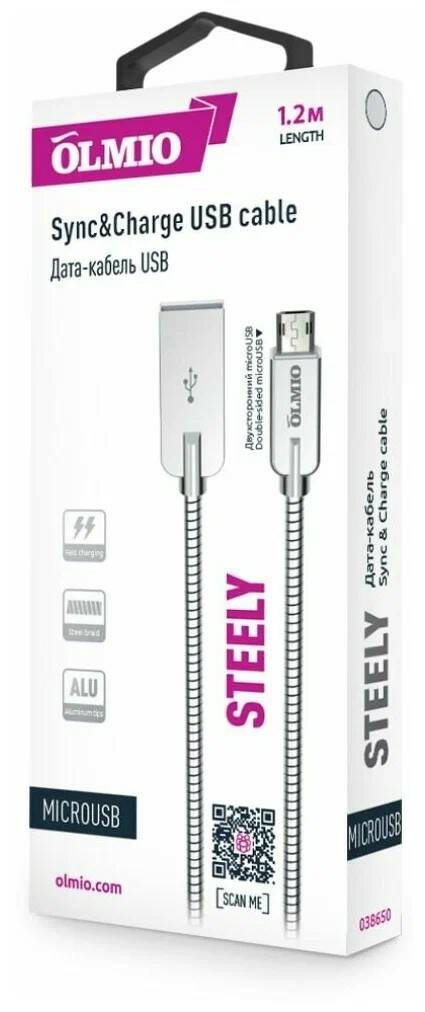 | Комплектация | Кабель Olmio Steely USB 2.0 - microUSB серый |