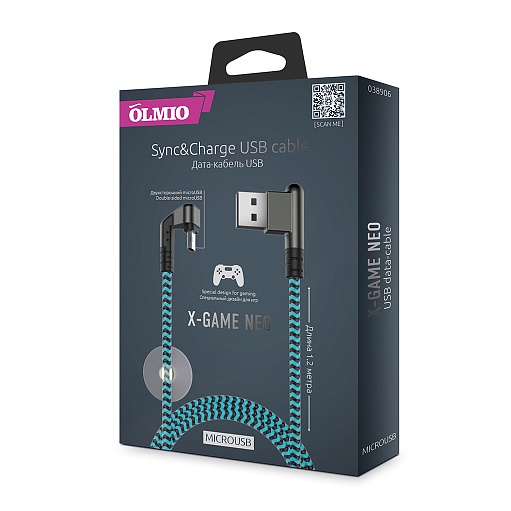 | Комплектация | Кабель Olmio X-Game Neo USB 2.0 - microUSB голубой |