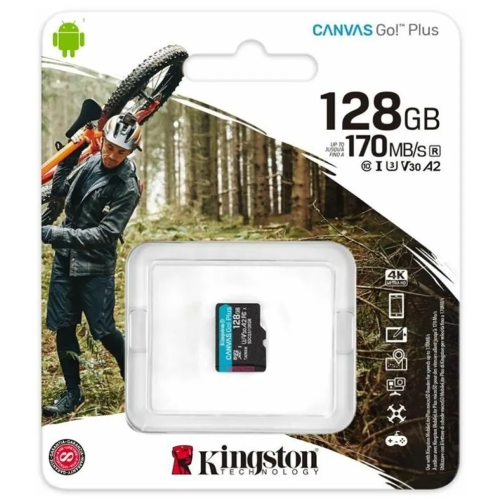 Карта памяти Kingston Canvas Go Plus microSDHC 128GB изготавливается с долговечным классическим корпусом из полимерного пластика. Окрашена в черный цвет. Выполнена в стандартном компактном форм-факторе microSDHC. Полностью соответствует стандартам Class 10, A2, Video Class 30 и UHS Class 3.
