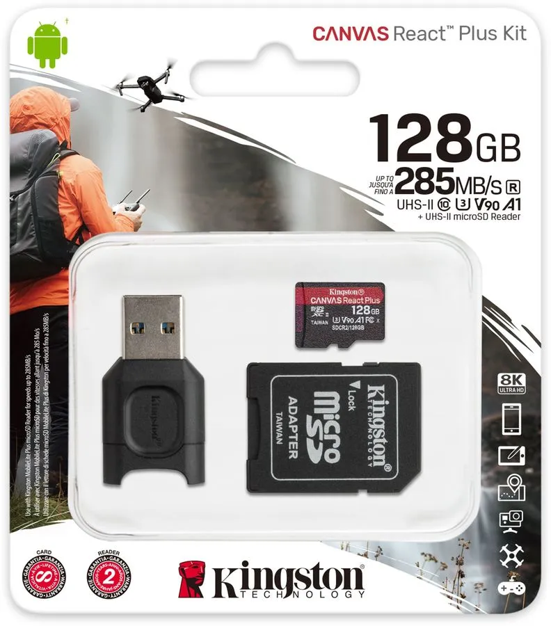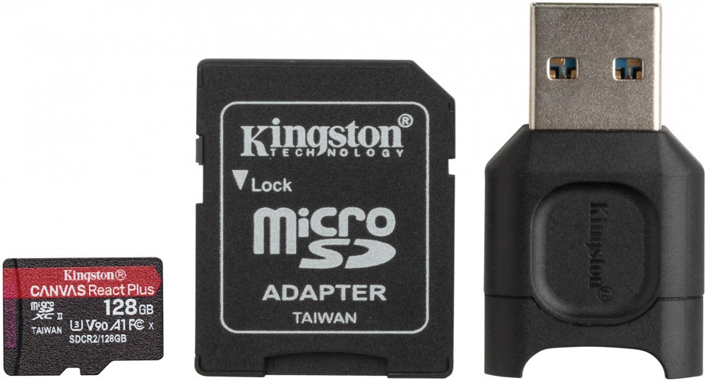 | Комплектация | Карта памяти Kingston Canvas React Plus microSDHC 128GB / SD адаптер - 1шт / USB адаптер - 1 шт. |