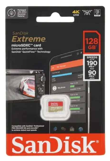 | Комплектация | Карта памяти SanDisk Extreme microSDXC 128Gb / Документация |