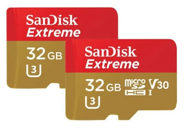 | Комплектация | Карта памяти SanDisk Extreme microSDHC 32 Gb - 2 шт. / Адаптер SanDisk - 1 шт. / Документация |