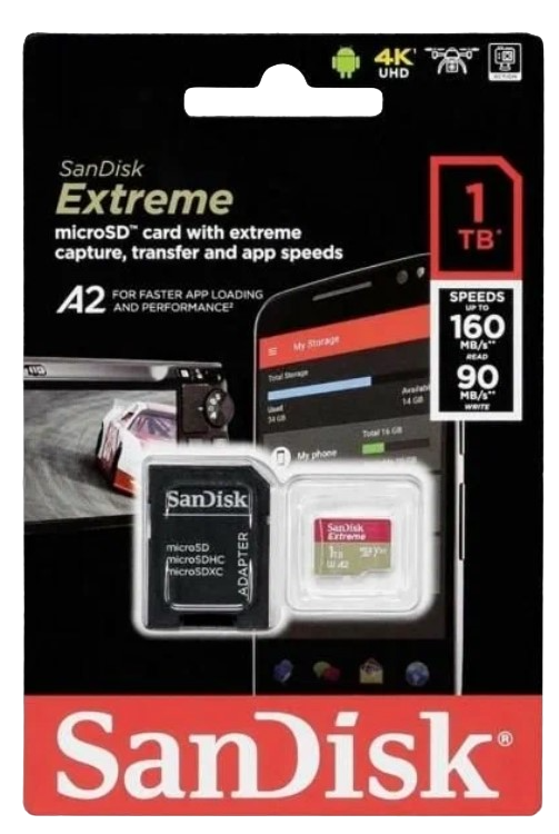 | Комплектация | Карта памяти SanDisk Extreme microSDXC 1 Tb / Адаптер SanDisk - 1 шт. / Документация |