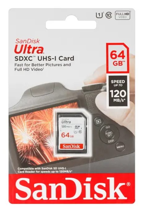 | Комплектация | Карта памяти SanDisk Ultra SDXC 64 Gb / Документация |