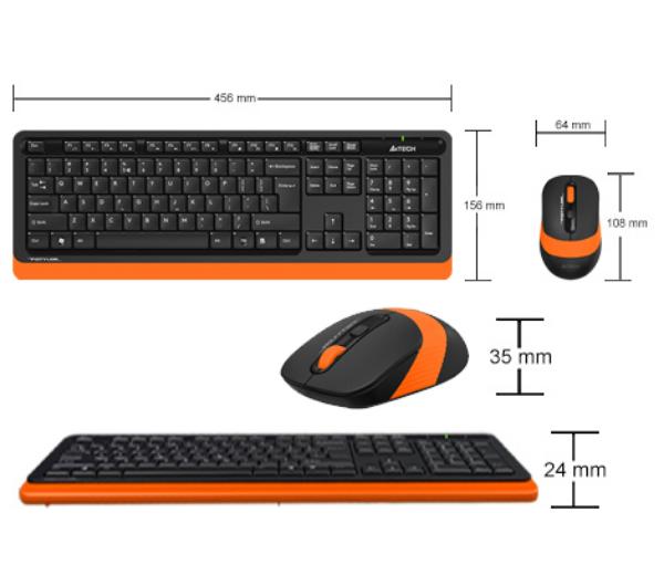 Комплект A4tech FG-1010-ORANGE Fstyler выполнен с корпусами из удобного пластикового полимера. Окрашен в черные цвета с оранжевой полосой. Комплектная мышь имеет эргономичную простую форму. Содержит точный сенсор, поддерживающий работу с предельной чувствительностью 2000 dpi. Подключается к системным платам посредством беспроводного переходника с радиусом действия в 15 Вт. Для подачи электропитания необходима батарейка типа АА.