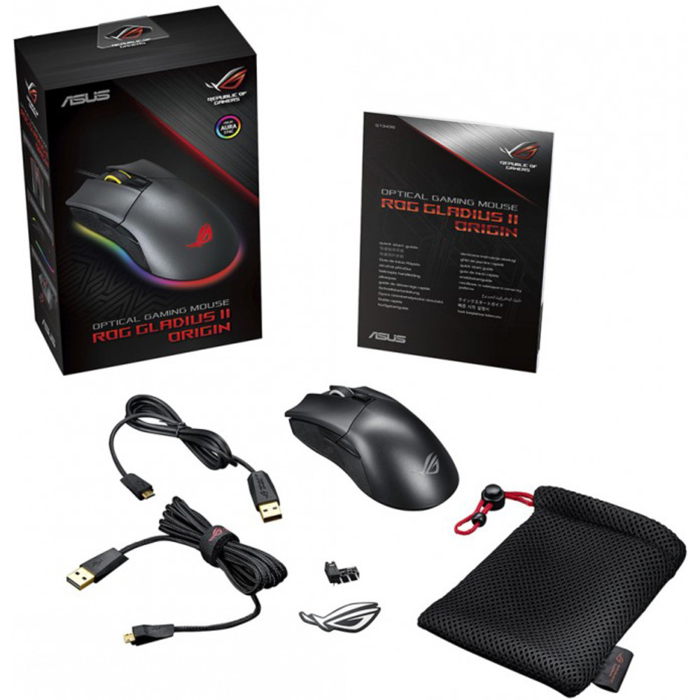 Мышь Asus P504 ROG Gladius II Origin представляет собой премиальное игровое решение, предназначенное для работы с различными мощными компьютерами и ноутбуками. Встроен высокоточный сенсор PixArt 3360 с предельной чувствительностью в 12000 dpi. Имеются 5 кнопок с возможностью назначения макросов, а также с долговечными переключателями Omron. Встроена светодиодная подсветка с множеством вариантов мерцания и цвета. Поставляется с двумя съемными кабелями.