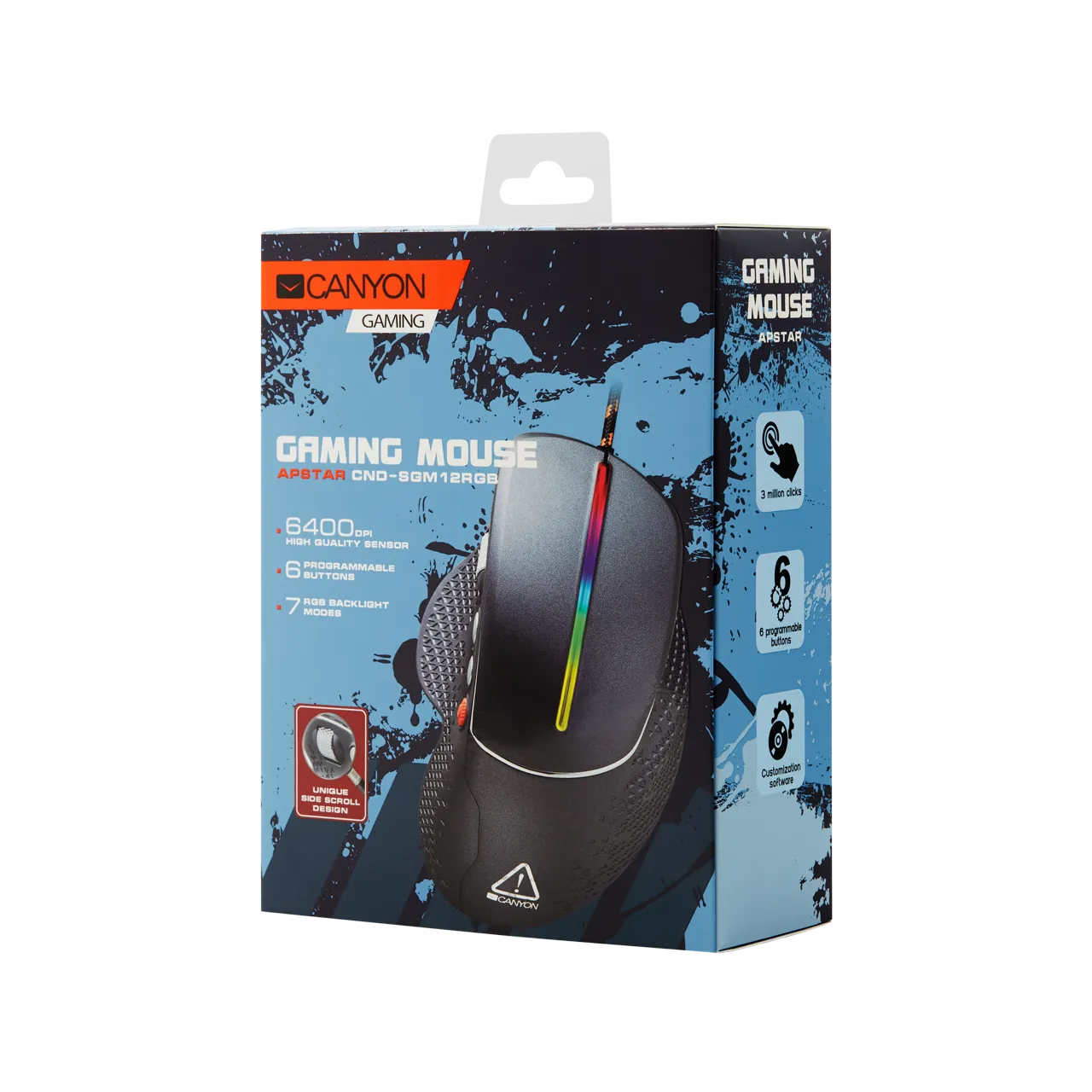 Мышь Canyon Apstar GM-12 представляет собой качественное и долговечное устройство бюджетного ценового сегмента. Выполнена с эргономичным пластиковым корпусом. Применяется для обработки фотографий, работы с документами и таблицами. Имеется четкий оптический датчик. Предусмотрена регулировки чувствительности до 6400 точек на дюйм. Обладает 6 кнопками с функцией назначения произвольных действий. Встроен кабель с длиной 1.65 метра и разъемом USB.