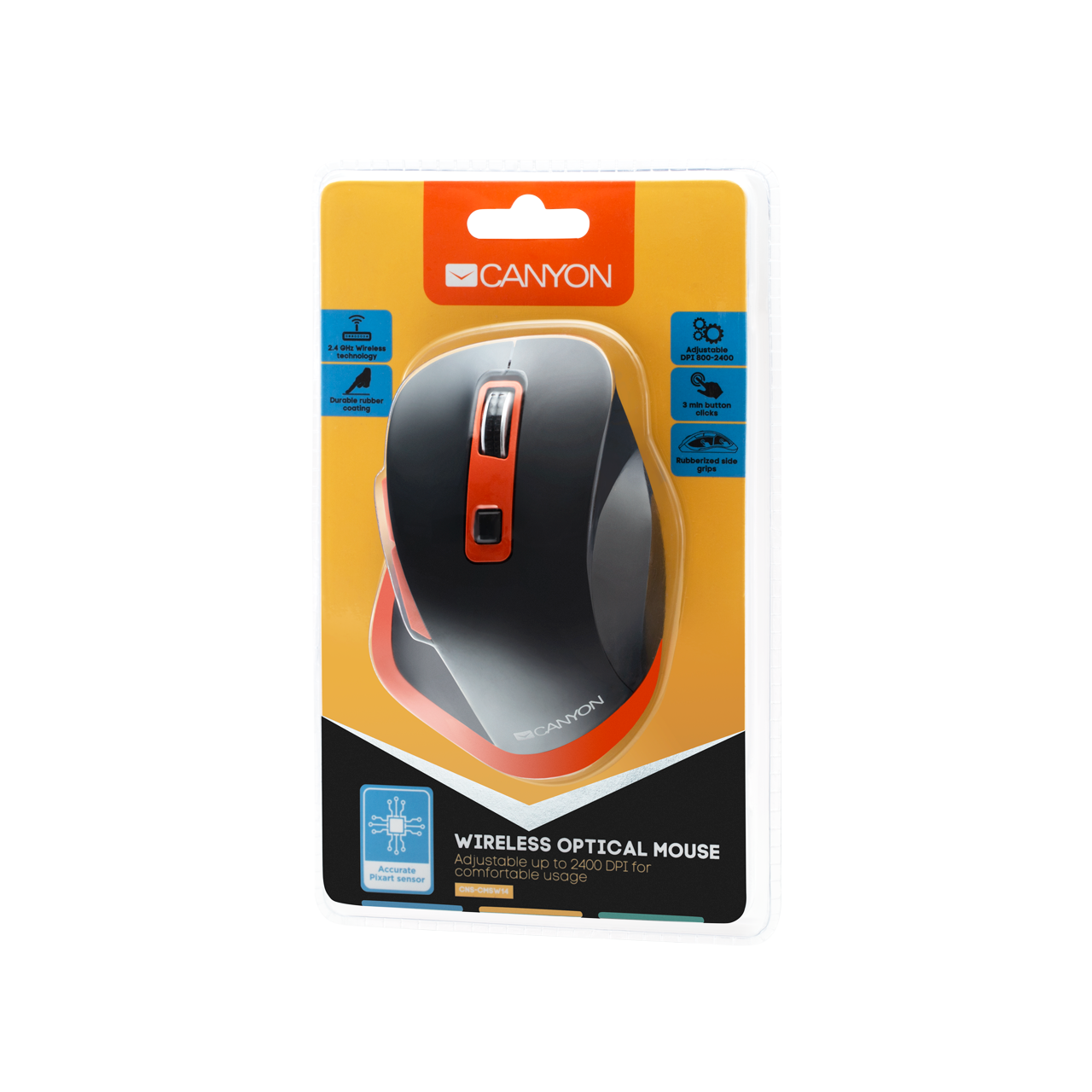 | Комплектация | Мышь Canyon MW-14 черно-оранжевый / Ресивер - 1 шт. / Батарейка AAА - 2 шт. / Документация |