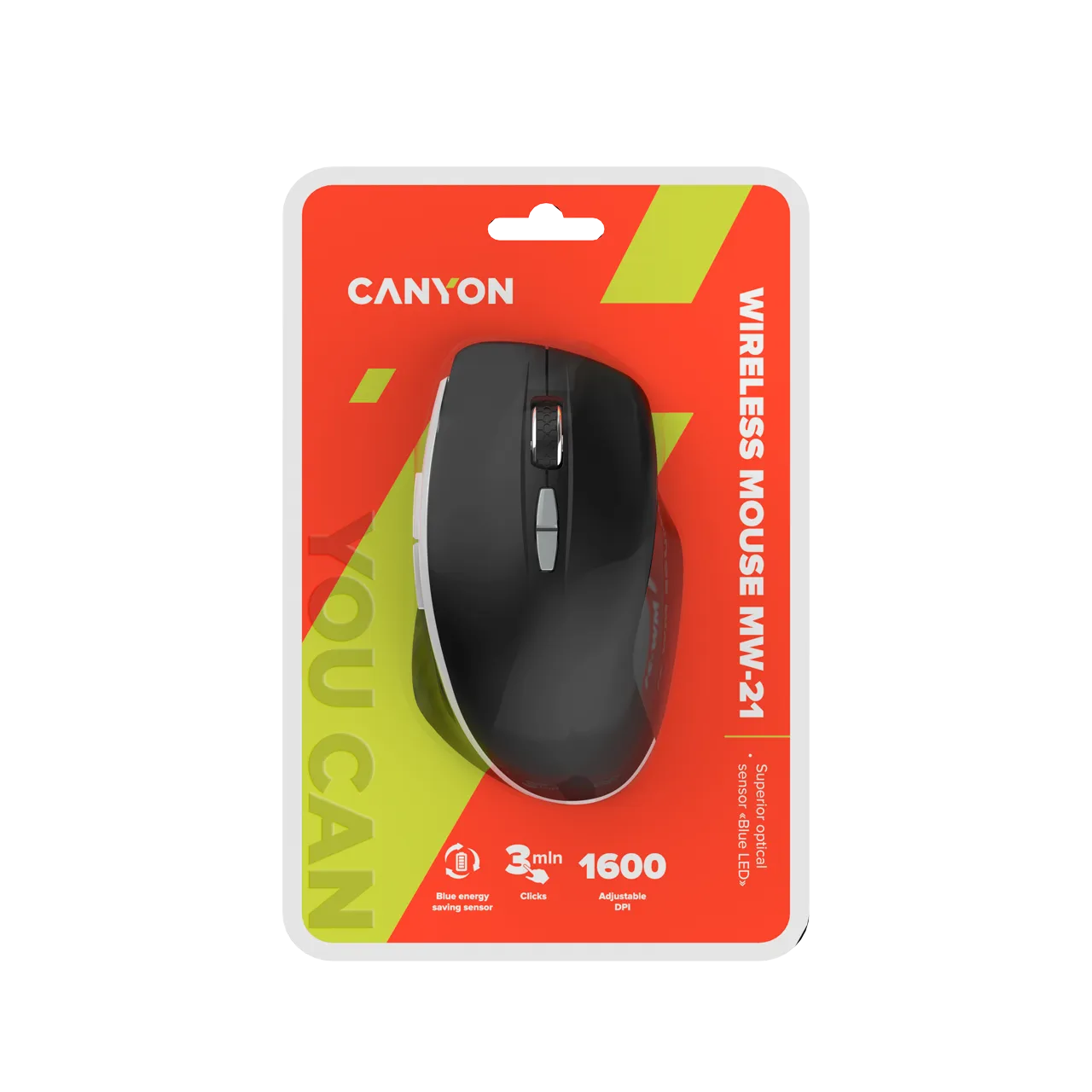 Компьютерная мышь Canyon MW-21 является качественным, надежным и мощным устройством для управления курсором на мониторе компьютера. В основе этой модели находится улучшенный современный сенсор, обеспечивающий более точное управление с разрешением до 1600 dpi. Такому сенсору требуется на 20% меньше энергии, что дает возможность более длительного использования заряда батареек. Мышь подключается к ПК с помощью радио соединения, поэтому вы не перегрузите рабочее пространство дополнительными проводами.