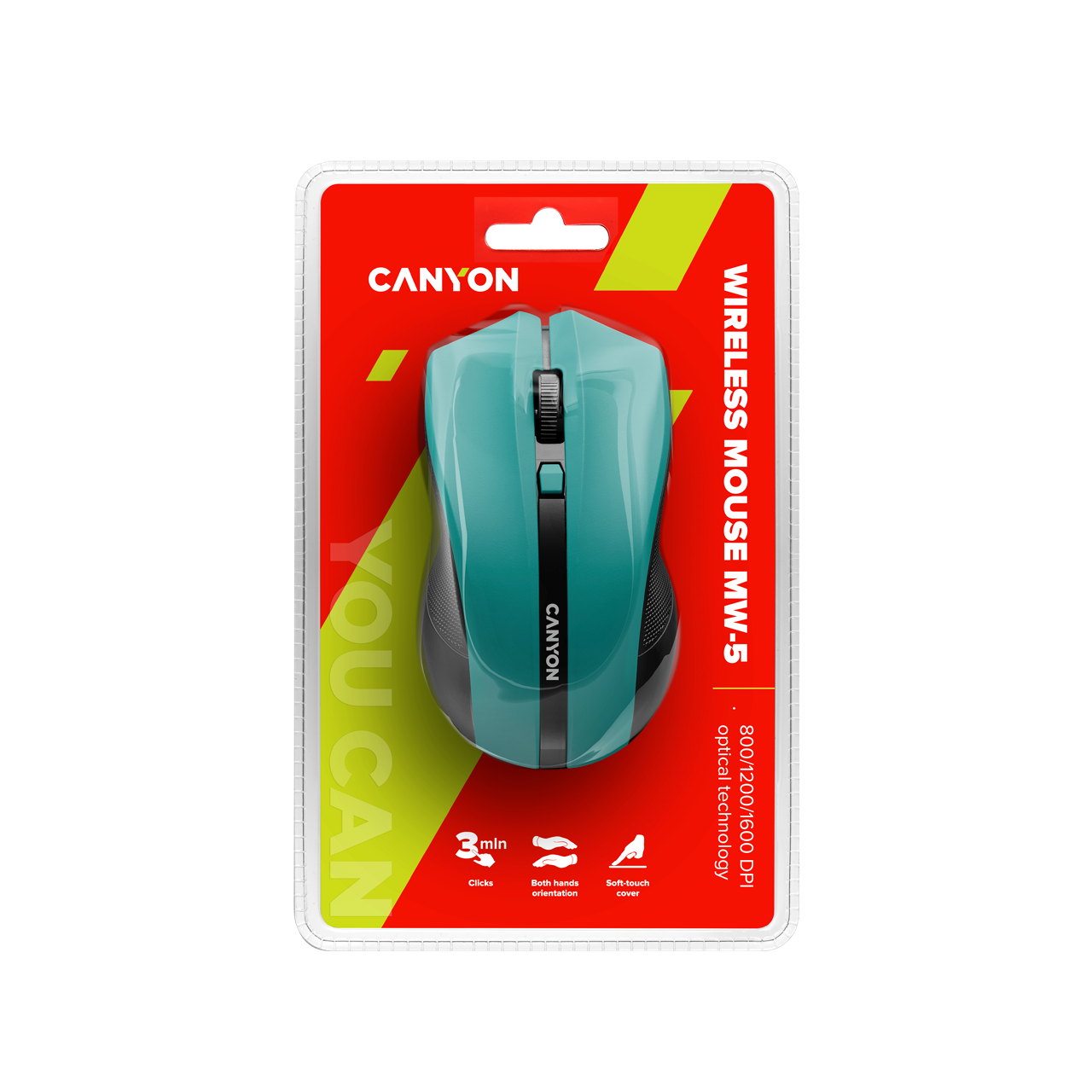 | Комплектация | Мышь Canyon MW-5 зеленый / Батарейка AAА- 2 шт. / Ресивер - 1 шт. / Документация |
