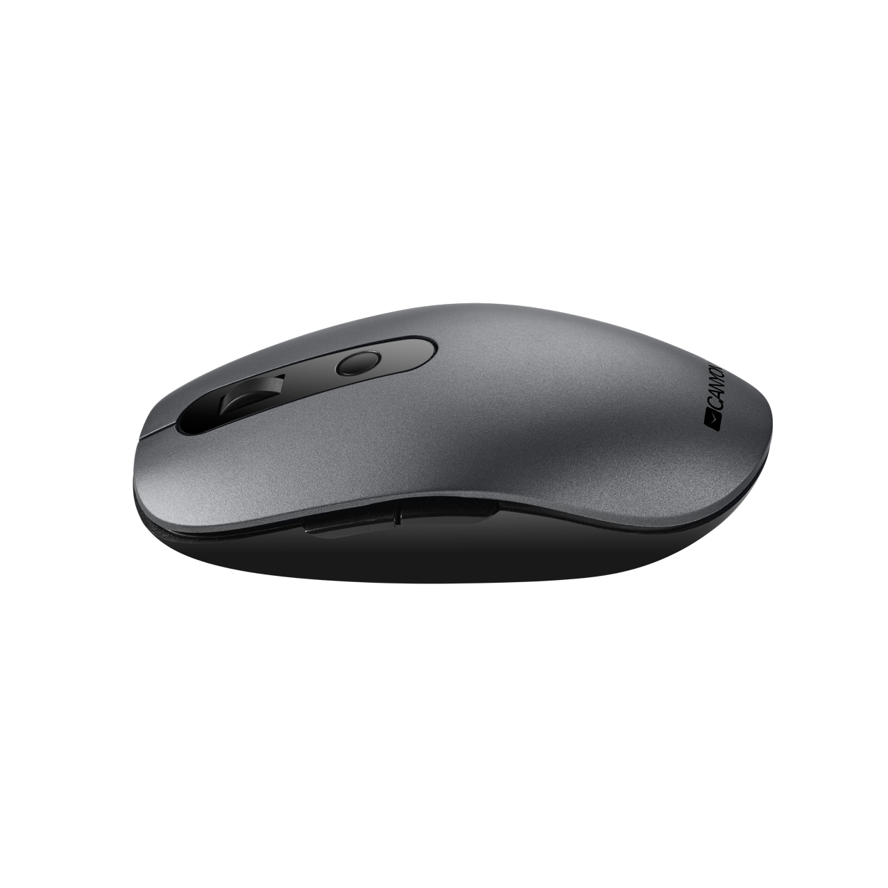Компьютерная мышь Canyon MW-9 привлекает внимание своим минималистичным дизайном и эргономичной формой с плавными линиями. Мышь имеет небольшой размер и поэтому прекрасно подойдет для ноутбука, который часто используется для работы вне офиса или дома. Устройство подключается к ПК двумя способами: беспроводным соединением Bluetooth или по радио каналу на частоте в 2.4 ГГц. Оптический датчик действует в одном из трех режимов и поддерживает максимальное разрешение до 1600 dpi. Вы сможете выбрать наиболее подходящий вам режим с помощью специальной кнопки на корпусе.