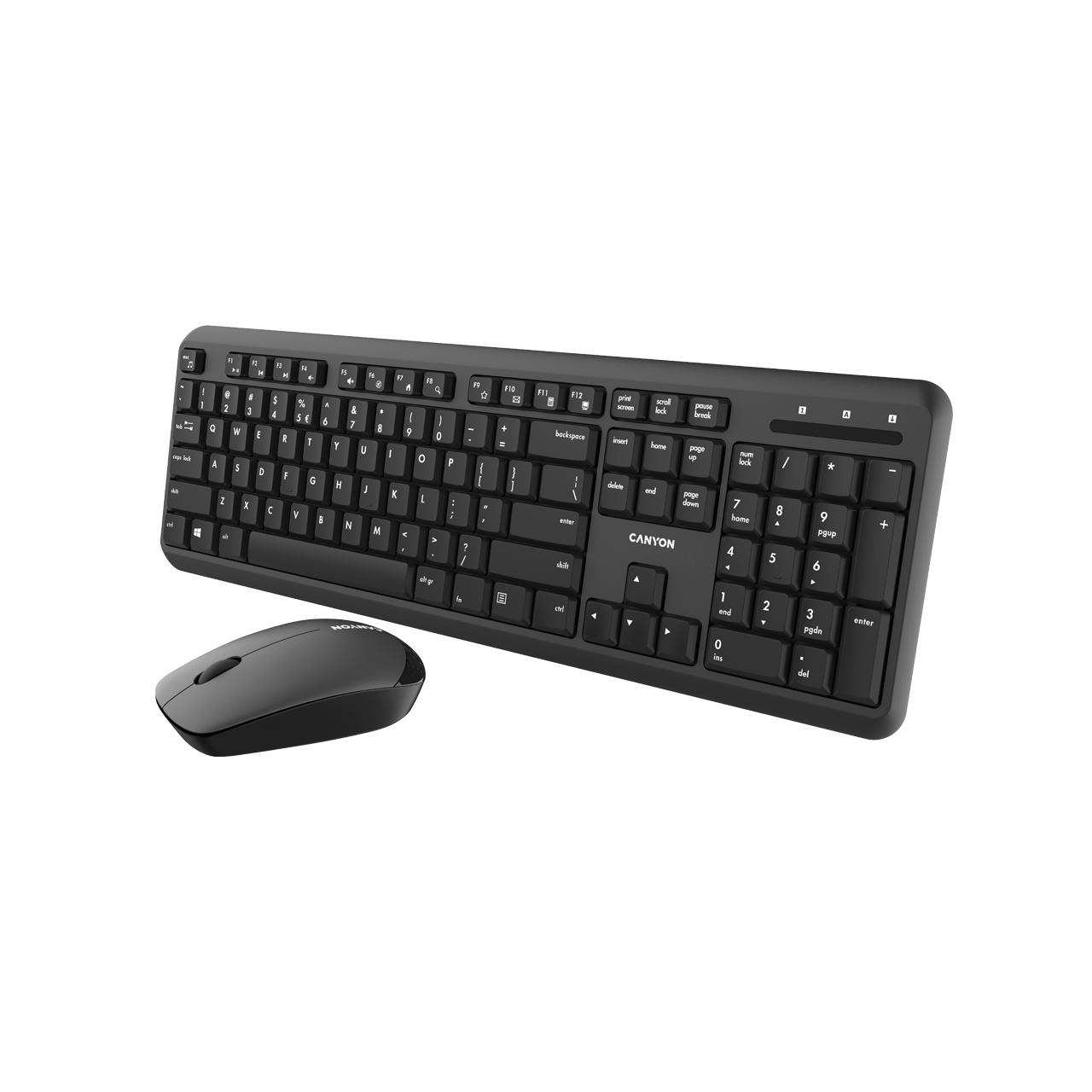 Комплект Canyon SET-W20 изготавливается с классическим офисным дизайном. Выполнен с корпусами из долговечного полимерного пластика. Окрашивается матовой черной краской. Мышь оснащается светодиодным датчиком. Обладает чувствительностью в 1200 точек на дюйм. Имеются три кнопки с роликом для прокрутки. Подключается посредством стандартного беспроводного модуля с разъемом USB и дальностью действия в 10 метров.