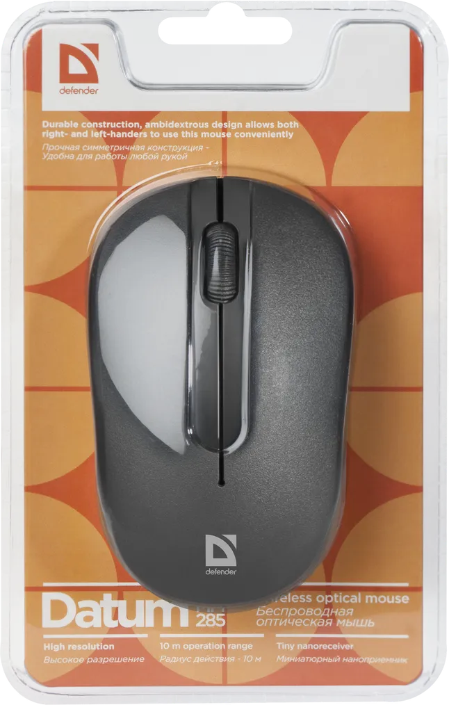 | Комплектация | Мышь Defender Datum MM-285 / Аккумуляторная батарея (AAA) - 2 шт. / Наноприемник - 1 шт. / Документация |
