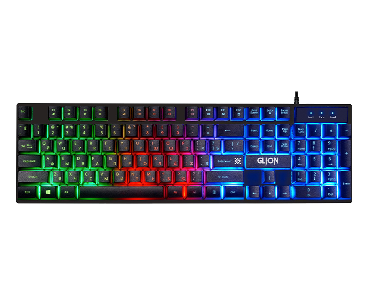 Комплект из игровой проводной клавиатуры Defender GLION C-123 и оптической проводной мыши станет отличным оснащением вашего компьютера. Оба устройства выполнены в едином стиле, смотрятся эффектно и агрессивно благодаря наличию светодиодной подсветки. Конструкция клавиатуры полноразмерная, с клавишами мембранного типа, которые легко и мягко нажимаются. Работать с такой клавиатурой также комфортно, как и играть. Вы сможете набирать текст, работать с документами, обрабатывать файлы и делать многие другие операции.