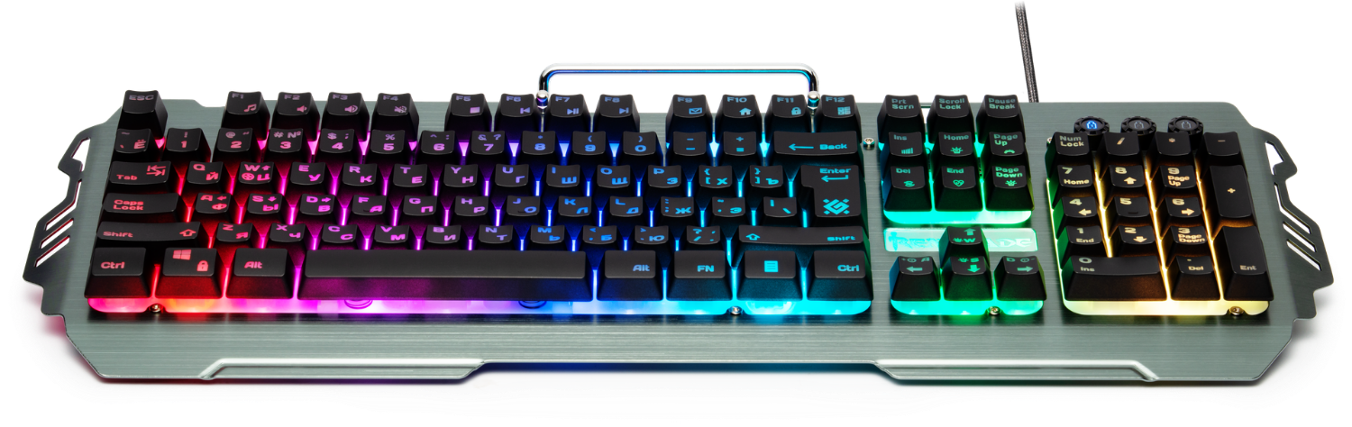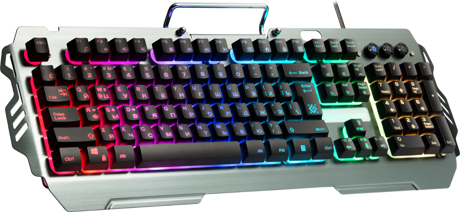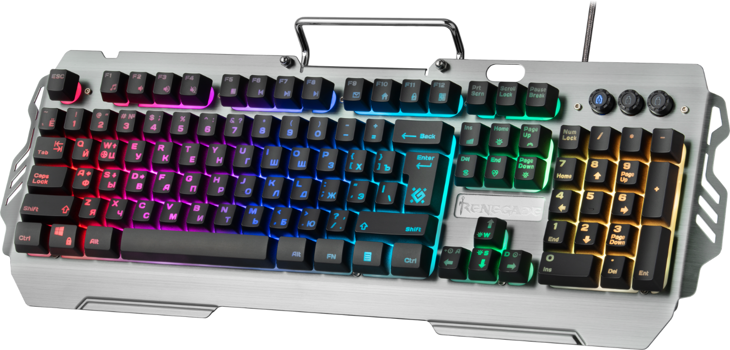 Клавиатура Defender Renegade GK-640DL представляет собой современное качественное и надежное решение бюджетного ценового сегмента. Предназначается для совместного использования с игровыми системными блоками, моноблоками и лэптопами. Имеются 104 долговечные клавиши мембранного типа. Встроена разноцветная подсветка. Пластиковый корпус окрашен в серебристый цвет. Подключается посредством 1.5-метрового кабеля с разъемом USB 2.0.