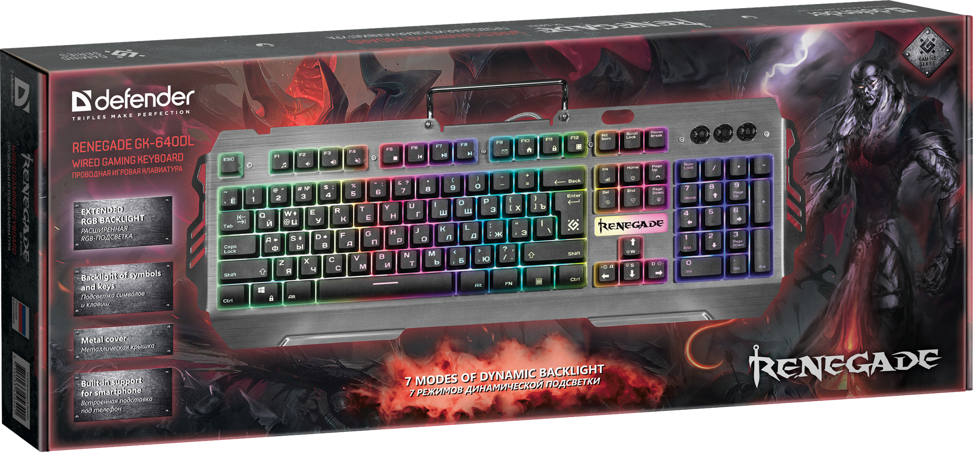 | Комплектация | Проводная клавиатура Defender Renegade GK-640DL / Документация |