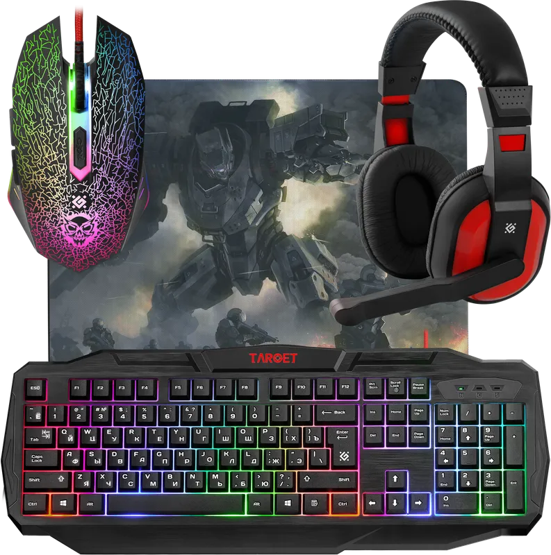 | Комплектация | Игровой набор Defender Target MKP-350 / Клавиатура Defender - 1шт / Мышь Defender - 1шт / Гарнитура Defender - 1шт / Коврик Defender - 1шт / Документация |