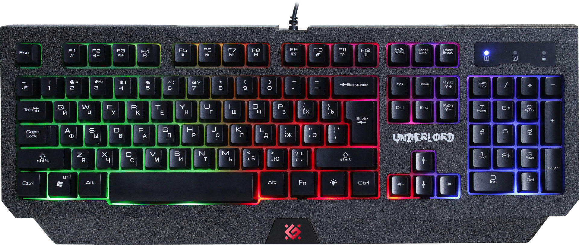 Defender Underlord GK-340L – это проводная игровая клавиатура, которая отличается своей надёжностью и длительным сроком службы. Она оснащена RGB-подсветкой, которую вы можете выключить. Угол наклона регулируется при помощи ножек. Благодаря влагоустойчивой конструкции срок службы клавиатуры составляет более 10 лет. Есть дополнительные игровые функции, которые обеспечивают максимальный комфорт во время игры. Кабель имеет высокопрочную дополнительную оплётку, которая не боится заломов и зубов домашних животных.