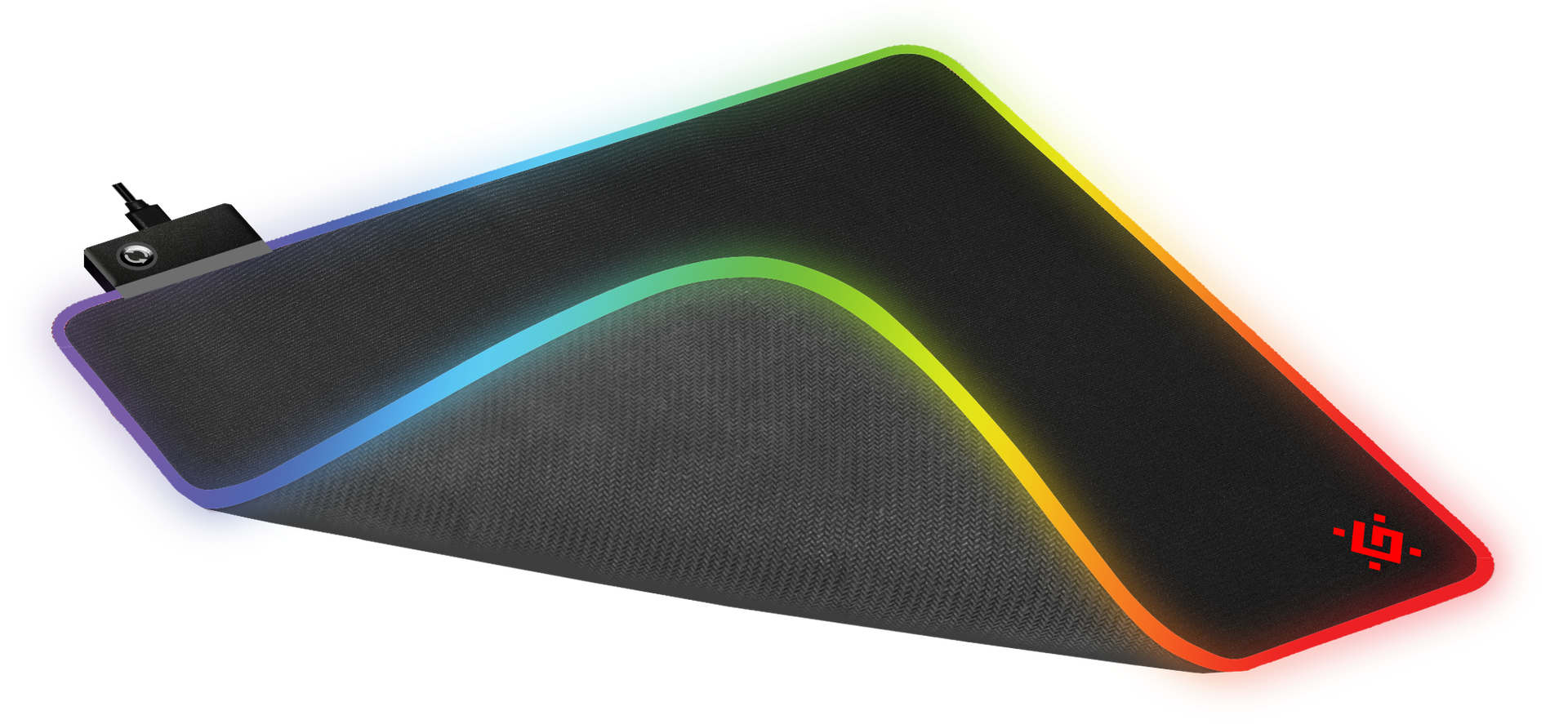 Коврик Defender XXL Light представляет собой современное стильное решение, предназначенное для оформления компьютерного стола, а также удобной работы с мышкой. Обладает качественной тканевой поверхностью, а также мягким основанием из нескользящей резины. Края оснащены яркой светодиодной лентой, имеющей 12 режимов мерцания и цвета. Подключается по кабелю к источнику питания. Окрашен в строгий черный цвет.