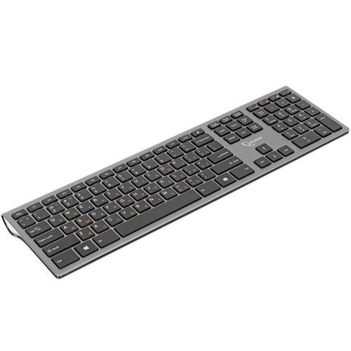 Клавиатура Gembird KBW-1 – универсальная модель для рабочего или игрового компьютера. Клавиатура относится к устройствам механического типа, обладает повышенным сроком службы за счет более прочного корпуса и отличается мгновенным откликом на нажатие клавиш. Клавиатура является беспроводной и подключается к ПК с помощью беспроводного соединения Bluetooth. В верхней части основания есть небольшая платформа, чтобы корпус находился в более удобном положении под наклоном.