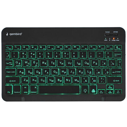 Клавиатура KBW-4 от бренда Gembird – отличное решение для домашнего ПК универсального значения. Клавиатура имеет небольшой размер, тонкий корпус и эффектно смотрится благодаря встроенной подсветке. На корпусе размещено 78 клавиш, которые имеют плавный отклик и бесшумно работают. Клавиатура подключается к компьютеру с помощью беспроводного соединения Bluetooth и получает энергию от встроенного аккумулятора, который требуется периодически заряжать. На полном заряде аккумулятор работает в течение 4 недель.