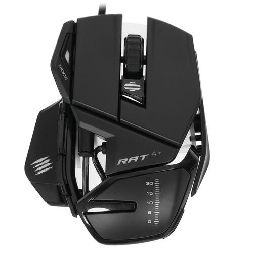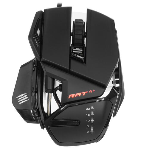 Эффектная игровая мышь Mad Catz R.A.T. 4+ выполнена в необычном дизайне и имеет разборную конструкцию. Модель подходит для охвата правой и левой рукой. Преимуществом мыши является наличие 9 программируемых кнопок. Мышь оснащена собственным сенсором, поэтому вы сможете выбрать один из четырех режимов работы мыши с разным разрешением от 800 до 7200 dpi. При своих внушительных размерах мышь легкая и маневренная, вам будет удобно работать с ней, а рука не будет уставать. Ресурс устройства рассчитан на 10 миллионов нажатий – вы сможете долго пользоваться мышью.