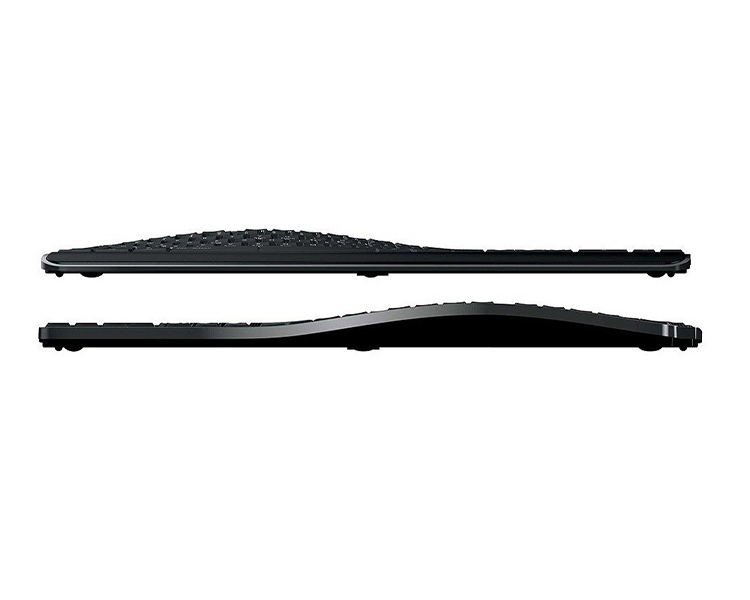 Комплект из клавиатуры и мыши Sculpt Comfort Desktop от бренда Microsoft представляет собой стильное решение для оснащения стационарного компьютера или моноблока. Клавиатура имеет особую изогнутую форму, за счет которой кисти рук во время работы находятся в более естественной позиции. Клавиатура оснащена подставкой под запястья, поэтому даже длительная работа за компьютером не будет вызывать дискомфорт, а руки будут меньше уставать.Подставку можно убрать.