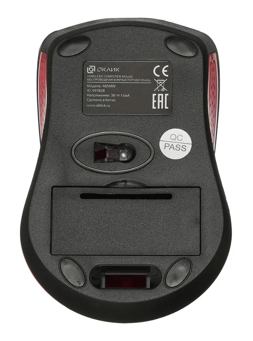| Комплектация | Мышь Oklick 485MW черно-красный / Батарейка типа ААА - 2шт / USB-ресивер - 1шт / Документация |