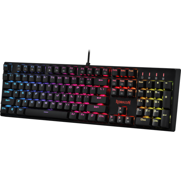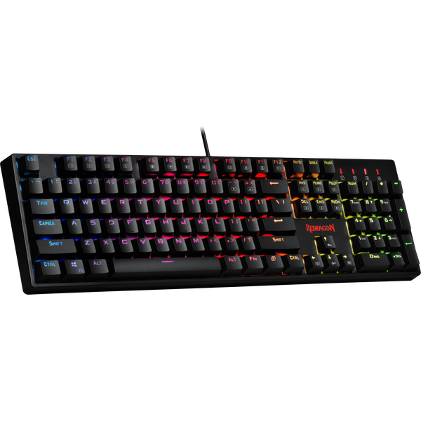 Клавиатура Redragon Surara представляет собой высокотехнологичное игровое устройство, применяемое для работы с различными мощными моноблоками и компьютерными системами. Установлены 104 клавиши с тихими механическими переключателями Redragon Red, ресурсом в 50 млн нажатий, а также дополнительными программируемыми кнопками. Имеется яркая подсветка с возможностью настройки мерцания, а также кабель с интерфейсом USB.