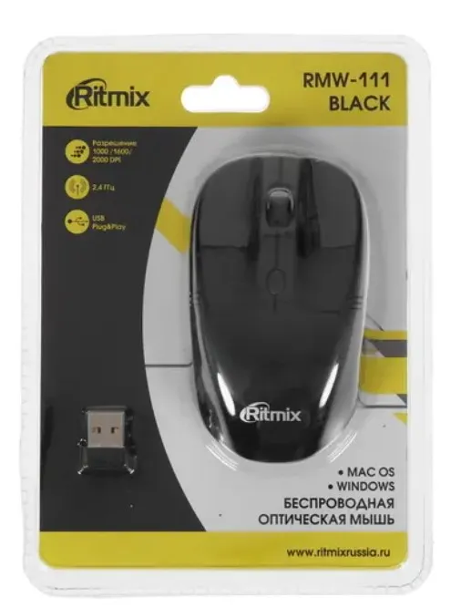 | Комплектация | Мышь Ritmix RMW-111 / Батарейка AА- 2 шт. / Ресивер - 1 шт. / Документация |