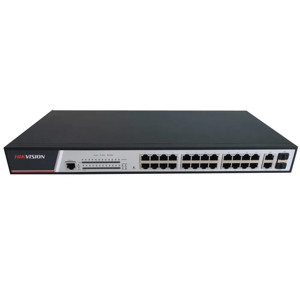 PoE Коммутатор Hikvision DS-3E2326P – надежное и высокоэффективное устройство, которое станет платформой для создания локальной сети и обмена данными внутри нее. Модель оснащена 24 портами RJ45 с поддержкой технологии электропитания PoE и 2 смешанными портами SFP/ Ethernet. С этой моделью можно организовать собственную систему видеонаблюдения. Подключенные камеры будут не только передавать данные, но и получать электропитание. Общий бюджет мощности на все порты PoE составляет 380 Вт.